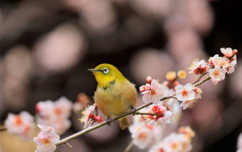 辻本さんの作品(花博公園のメジロ)