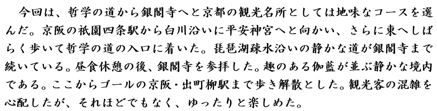 ⇒平安神宮⇒哲学の道(昼食休憩)⇒銀閣寺⇒京阪・出町柳駅